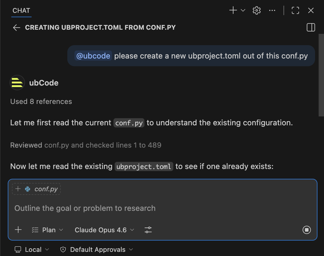 “Please move the sphinx-needs configuration from my conf.py into a ubproject.toml”